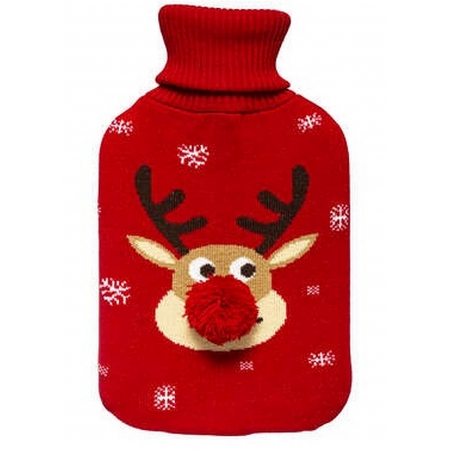 Description assortiments: bouillotte rouge avec tête de renne et pompon rouge