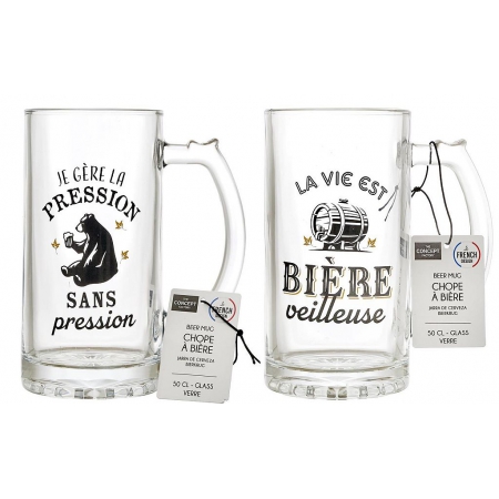 Verre à bière de 20 cl en forme de chope traditionnelle. Ce verre combine le plaisir traditionnel de déguster une bière avec une touche de modernité et d'esprit. Décoré avec une phrase amusante et conviviale, ce verre invite à la détente et à la bonne humeur. Idéal pour partager une bouteille ou pour offrir en cadeau.
