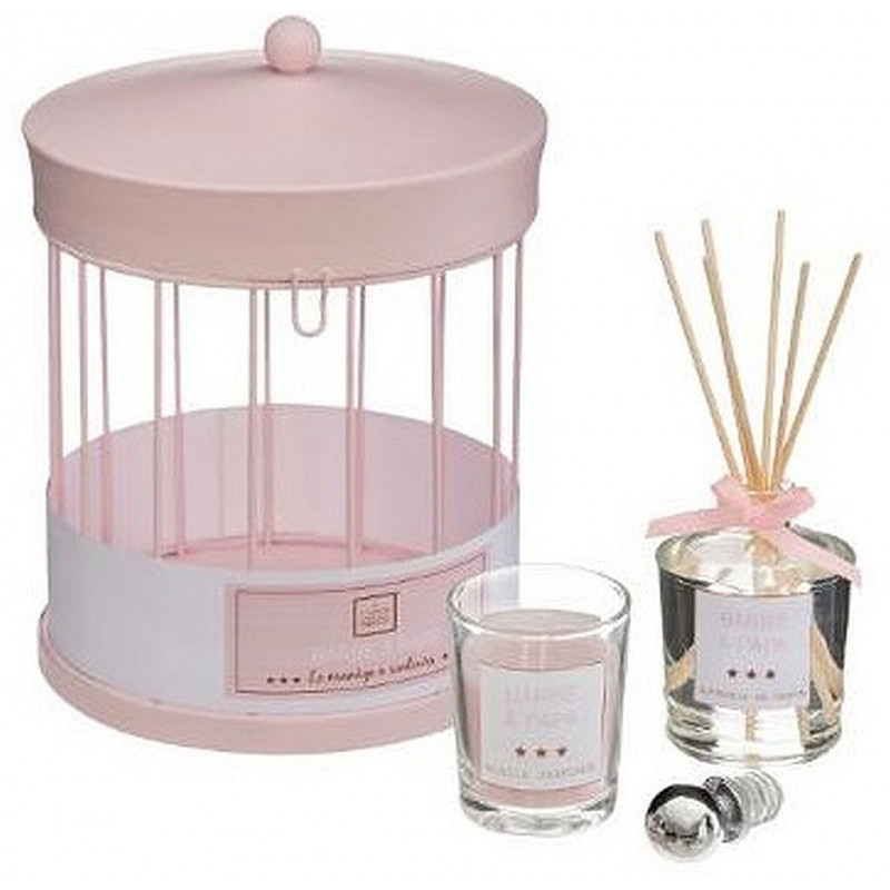 Détail dimensions: Bougie : D. 5 x H. 6 cm Diffuseur : D. 6 x H. 8 cm Batônnets : H. 16 cm