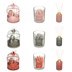 Détail dimensions: Bougie : D. 5,5 x H. 6 cm Diffuseur : D. 6,5 x H. 8 cm Bâtonnets : H. 20 cm