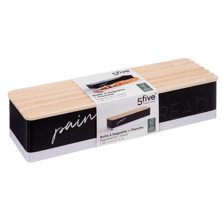 Boîte à baguette avec couvercle en bois Hévéa FSC 2 en 1, usage planche à découper. Epaisseur métal renforcée