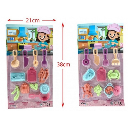 Blister comprenant des ustensiles de cuisine et des ingrédients.