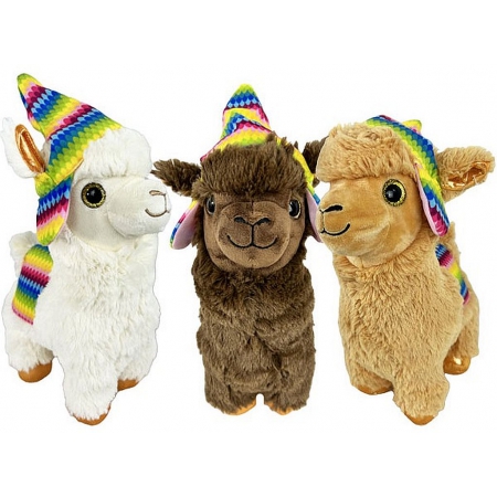 PELUCHE LAMA HABILLE BONNET 35 CM