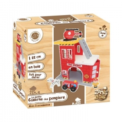 tout en bois avec 5 accessoires : un pompier, un hélicoptère un chien une échelle et un véhicule pompier : tout ce qu'il faut pour sauver des vies