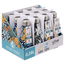 Bouteille isotherme en inox au format 0,26L, imprimé tropical. Chaud 6h - Froid 10h