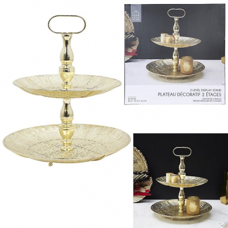 Présentez joliment et efficacement vos objets de décoration grâce à ce plateau doré à 2 étages ! Vous apporterez une note orientale à votre intérieur.