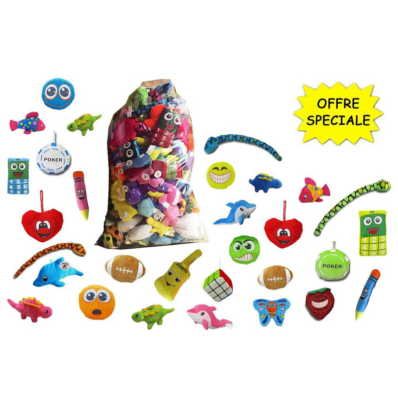 Craquez pour ce lot de peluches assorties de 12 cm, idéal pour offrir en cadeau ou pour agrémenter une kermesse ou une fête d'anniversaire. Ces adorables petites peluches aux couleurs vives et aux textures douces feront le bonheur des petits comme des grands. Chaque lot contient une sélection de peluches variées, parfaites pour collectionner ou pour décorer une chambre d'enfant.