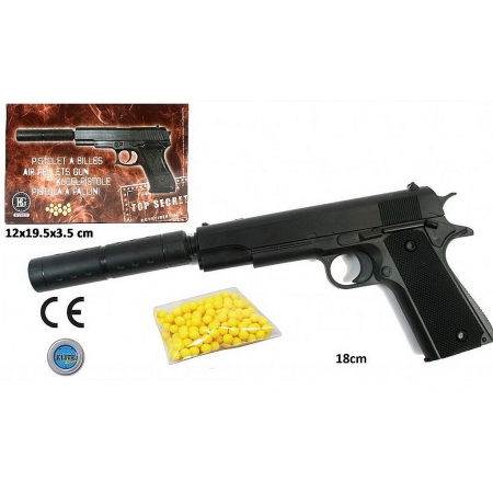 PISTOLET BILLES AVEC SILENCIEUX 18 CM