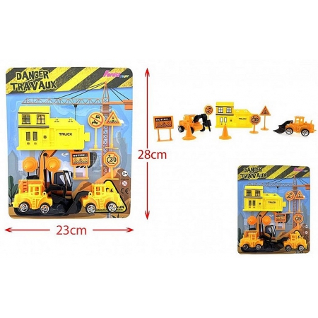 Blister composé de 2 engins de chantier et 7 accessoires.